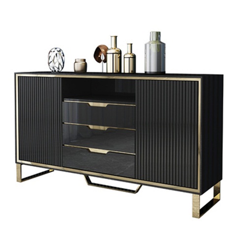 3、備餐柜左右兩邊及上部抽屜和柜門結合的封閉式空間搭配中間可上下調節(jié)的酒格設計別出心裁,增大儲物空間的同時更方便您陳列各式美酒;四個支撐腳設計,使備餐柜結構更加穩(wěn)固。