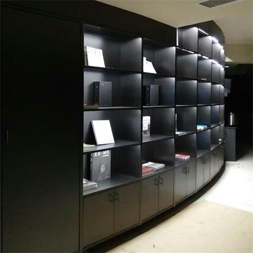 黑色不銹鋼書(shū)柜_圖書(shū)館黑鈦拉絲不銹鋼書(shū)架圖