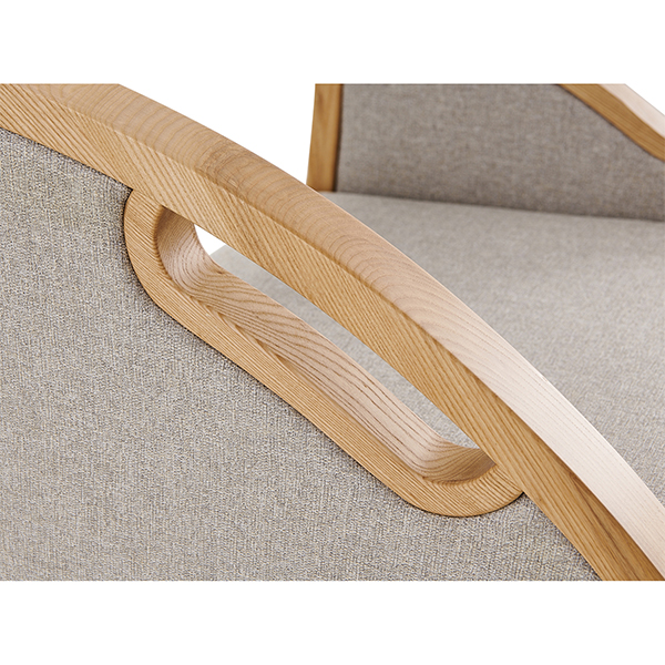 【材質(zhì)說明】: 扶手外框采用A級白蠟?zāi)局谱?,木扶手?jīng)開料、造型、打磨、噴漆制作;座背軟包可選配布紋及皮革軟包。