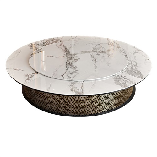 酒店豪華輕奢大理石臺面電動餐桌大圓桌圖