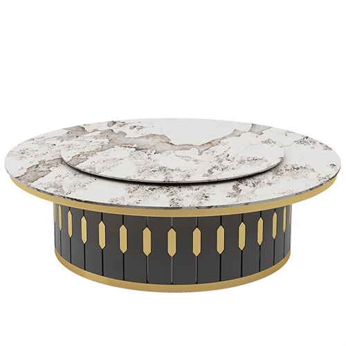 會(huì)所酒店包廂宴會(huì)自動(dòng)旋轉(zhuǎn)巖板電動(dòng)餐桌大圓桌造型美觀、外形可人,或雍容華貴或典雅高潔,是接待客人、酒店用餐的理想產(chǎn)品。本款電動(dòng)餐桌桌面采用巖板,高品質(zhì)五金框架,高硬度巖板轉(zhuǎn)盤