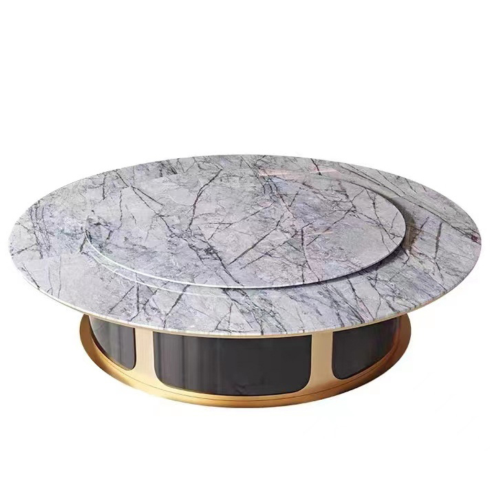 酒店會所大理石豪華大圓桌電動餐桌