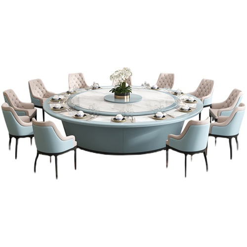 酒店大理石多功能旋轉(zhuǎn)電動(dòng)餐桌子,采用的是雪白的天然大理石做桌面,底座與包邊則是使用天藍(lán)色,兩種顏色搭配起來(lái)非常時(shí)尚。