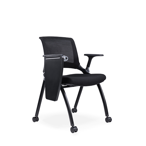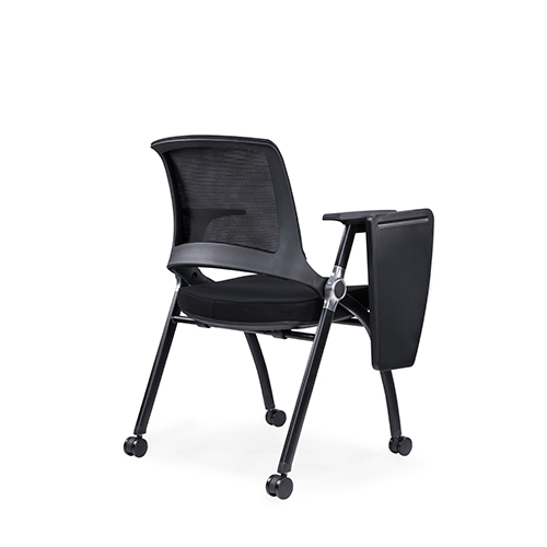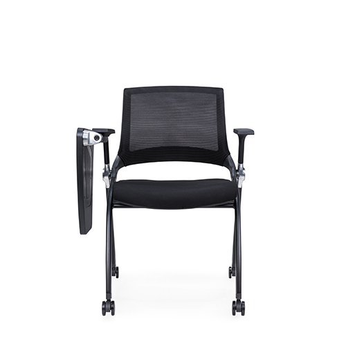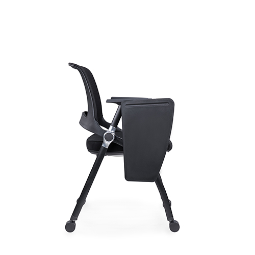 黑色噴涂椅架,后背鋁合金活動(dòng)鑄件連接,實(shí)心鋼筋支撐座板,帶鋁合金活動(dòng)鏈接件,座板可翻轉(zhuǎn),鋁合金支架寫字板,內(nèi)含水杯架寫字板面