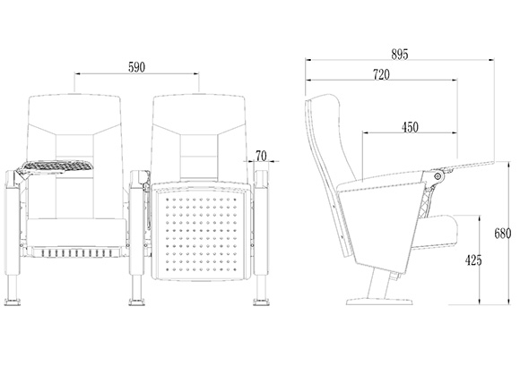 座寬(扶手中對(duì)中):580mm,座椅總高:1000±10mm,座高:425±10mm。