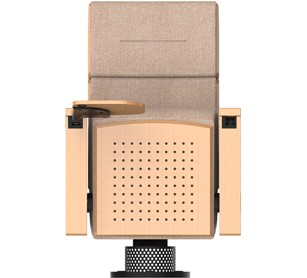 3.在保證觀眾舒適度的前提下,背墊高不超過(guò)1000mm,增加椅背板的聲反射面積,改善座椅的吸聲;座底板根據(jù)需要打吸音孔,使座椅的吸聲量在不同的上座率盡可能保持一致。
