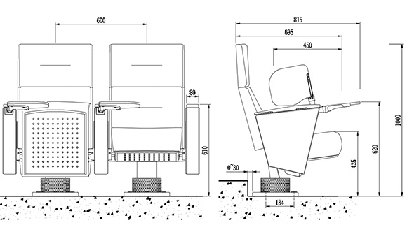 座椅深度:815±10mm,扶手高620±10mm:最小排距:900mm。