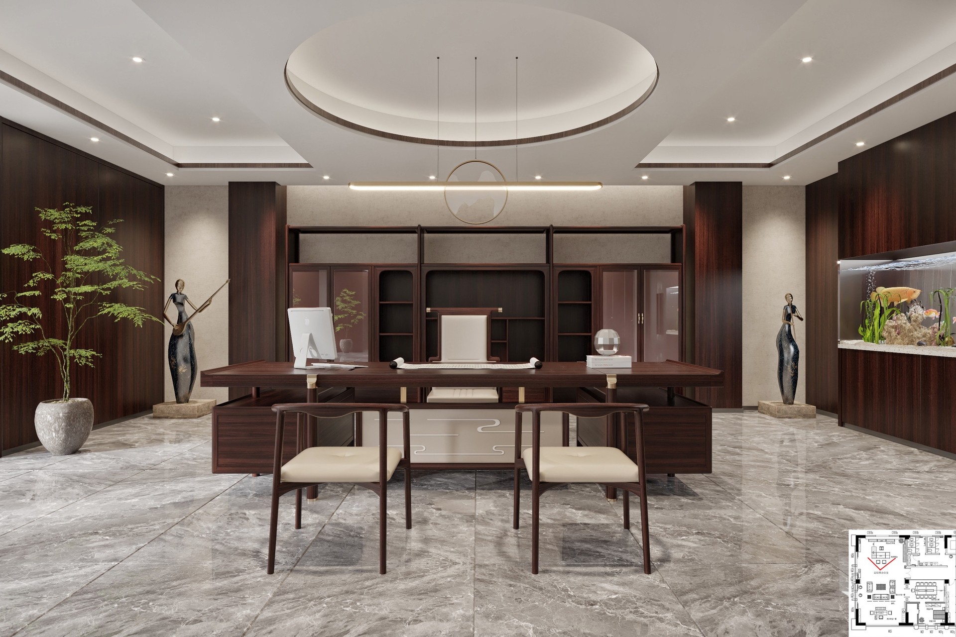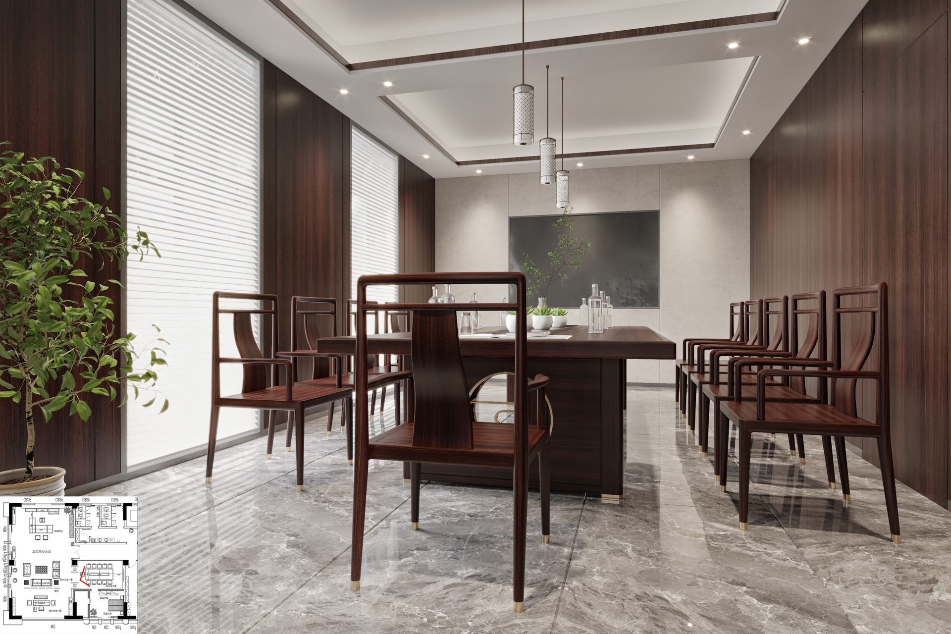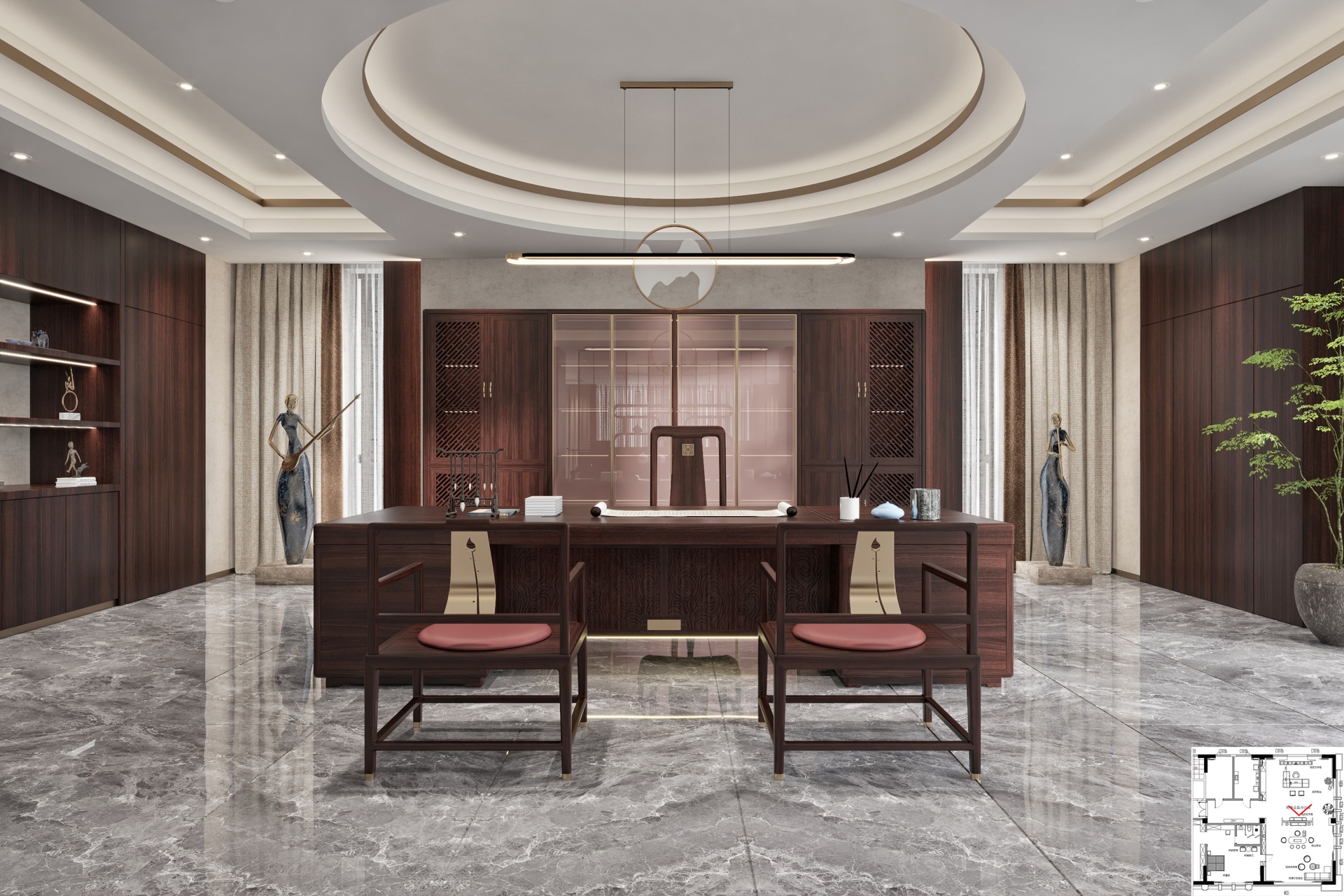 禪意極簡中式辦公案例
